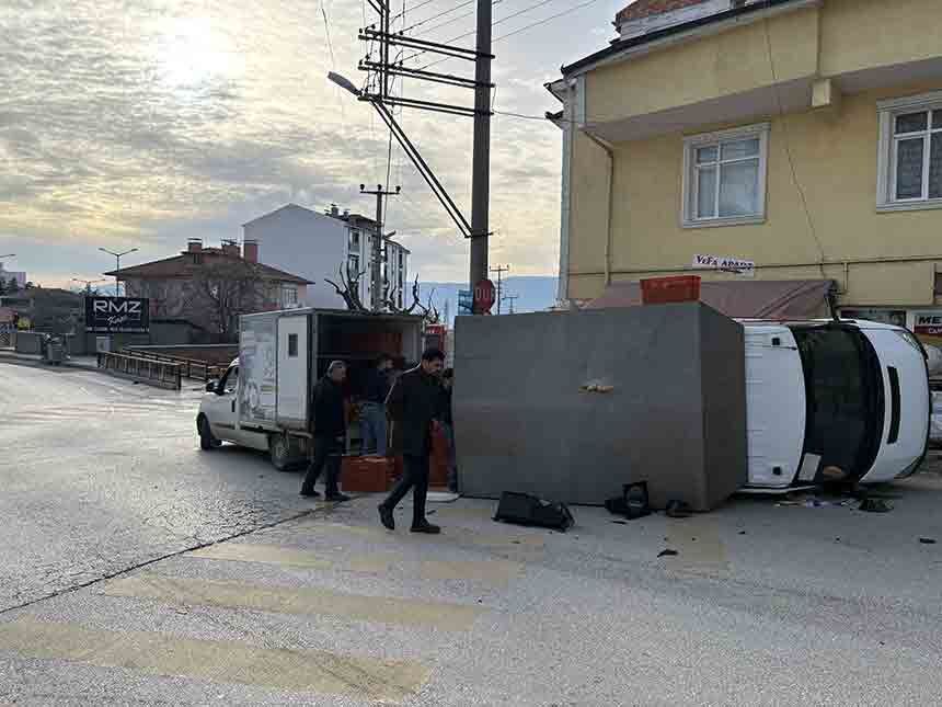 Edinilen bilgilere göre, Mehmet K. idaresindeki minibüs ile Serhan A. yönetimindeki kamyonet çarpışmanın etkisiyle savruldu. Kamyonet sinyalizasyon direğine ve yol kenarındaki su damacanalarına çarparak yan yattı.