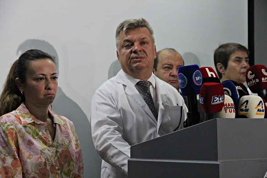 Ferdi Zeyrek'in yoğun bakımdaki 60 saati geride bıraktığını aktaran Prof. Dr. İsmet Topçu, "Ferdi Zeyrek başkanımızın hastaneye yatışının 60. saati ve tedavi sürecinin 3'üncü gününe girdik. Bildiğiniz üzere elektrik akımına kapılması sonrası yaklaşık 70 dakika yapılan kalp ritmi canlandırma, canlandırma sonrası alınan yanıt sonrası yoğun bakım süreci devam ediyor. Bugün itibariyle dünden daha farklı olarak tedavimiz yine yoğun bakımda üst düzey devam ediyor. Ama dün ile bugün arasında bakıldığında iyi yönde bir gelişme yok. Ama negatif yönde de bir gelişme yok. Mevcut tedavisi, yine mücadelesi, hayatta kalma mücadelesi devam ediyor. Söyleyeceğim, bunun dışında tüm teknik ekip, ekipman anlamında tüm ihtiyaçlar karşılanıyor. Onlarla ilgili bir sıkıntımız yok. Ama söylediğim gibi yine hem kalbinin hem akciğer oksijenlenmesinin sağlanması, bir de böbreklerin diyaliz fonksiyonlarının sürdürülmesi işlemleri ve yoğun bakımda devam ediyor. Bunlarla ilgili tüm bilgilendirmelerle yine gerek başka konularda uzmanlarıyla birlikte değerlendirmelerle süreç devam ediyor. Dünden daha farklı bir gelişme maalesef yok. Yeni bir gelişme yok. Tabii bu süreçte başta rektörümüz yine Sayın Valimiz artı Bakanımız, Bakan yardımcılarımız sürekli olarak istişare halindeyiz. Onların destekleri hem çalışan ekibimizin motivasyon anlamında çok değerli." dedi.