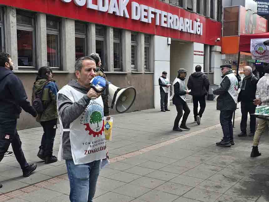 Tüm Emeklilerin Sendikası temsilcileri, vergi dairesi önünde üye standı kurarak 12 Nisan'da Karabük'te düzenlenecek olan etkinliğe davet etti.
