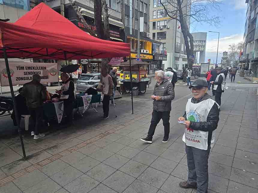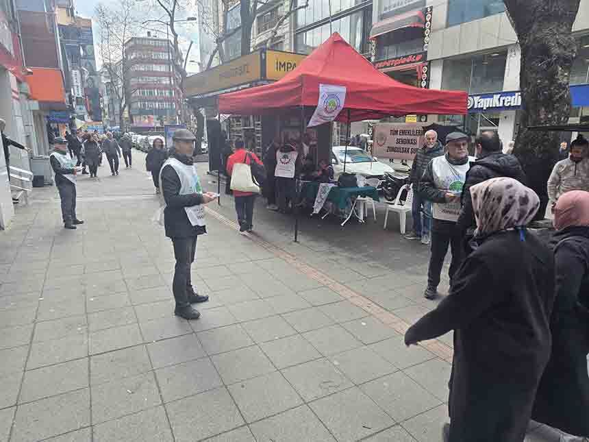 Tüm Emeklilerin Sendikası vergi dairesi önünde kurdukları stantta emeklilere çağrıda bulunarak sendikaya üye olmaya davet etti.