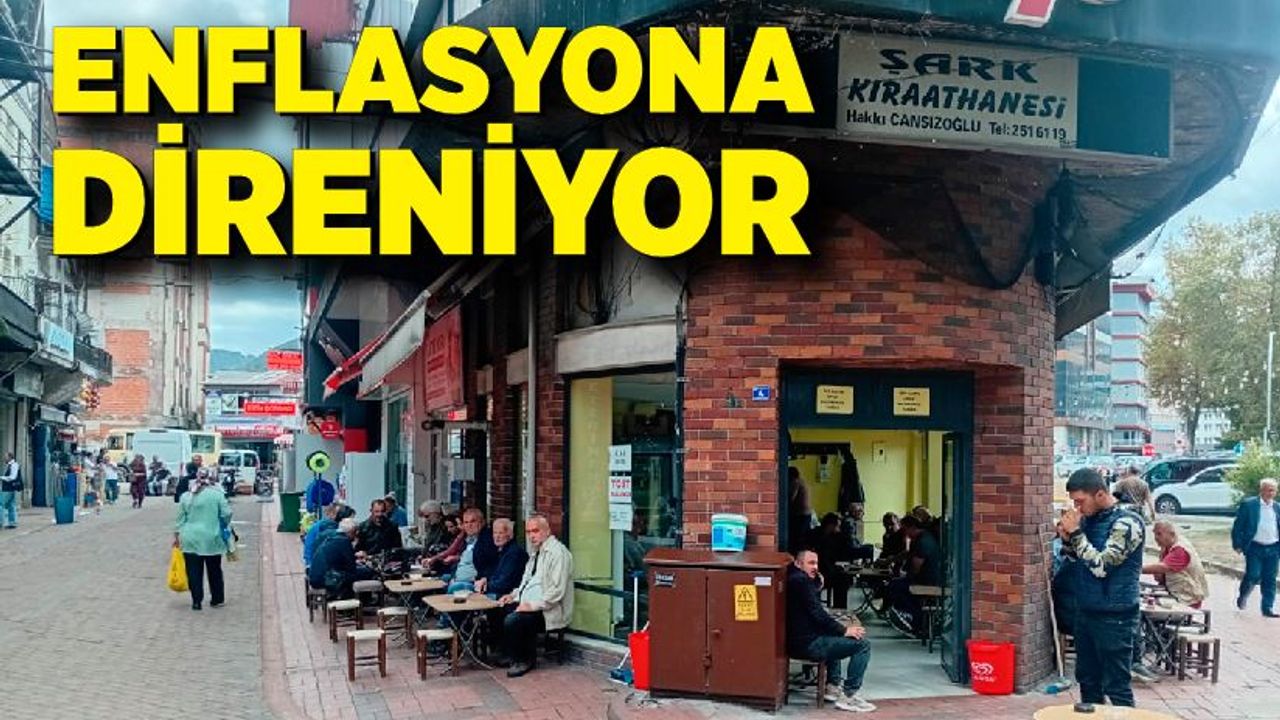 Zonguldak’ın en eski kahvehanelerinden biri olan ve halk arasında “işçi kahvehanesi” olarak bilinen Şark Kıraathanesi her türlü enflasyona ve tarifeye inat bir bardak çayı 10 liraya satmaya devam ediyor.