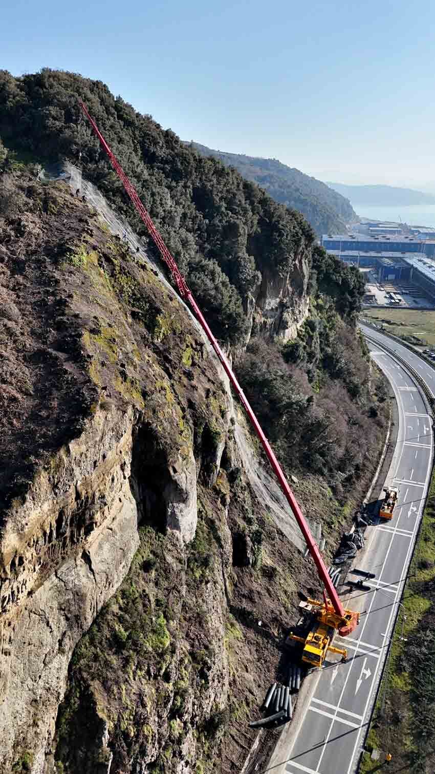 Ereğli–Akçakoca karayolunun 17–19. kilometreleri arasında, kaya düşmesi ve heyelan riskine karşı 38 bin metrekarelik çelik ağ uygulaması başlatıldı.
