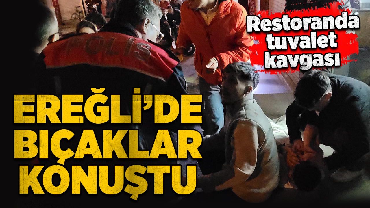 Ereğli ilçesinde restoranın tuvaletindeki Y.K. (30) ile içeride birilerinin olup olmadığını kontrol etmek için kapıyı çalan E.K.G. (21) ve arkadaşı E.S. (21) arasında kavga çıktı. Kavgada E.K.G. ve E.S. bıçakla yaralanırken, Y.K. gözaltına alındı.