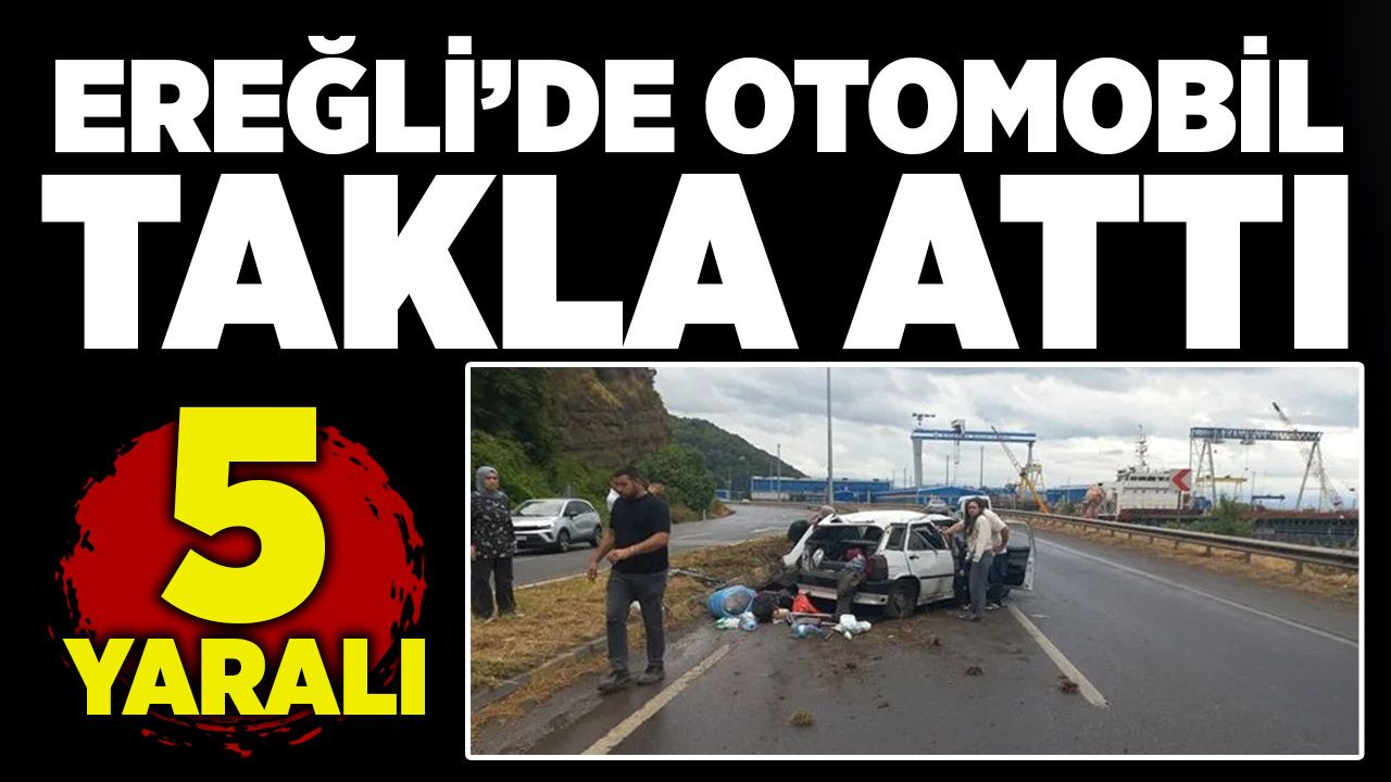Zonguldak’ın Karadeniz Ereğli ilçesinde meydana gelen trafik kazasında takla atan otomobilde bulunan 5 kişi yaralandı. Olay yerine çok sayıda ambulans sevk edildi.