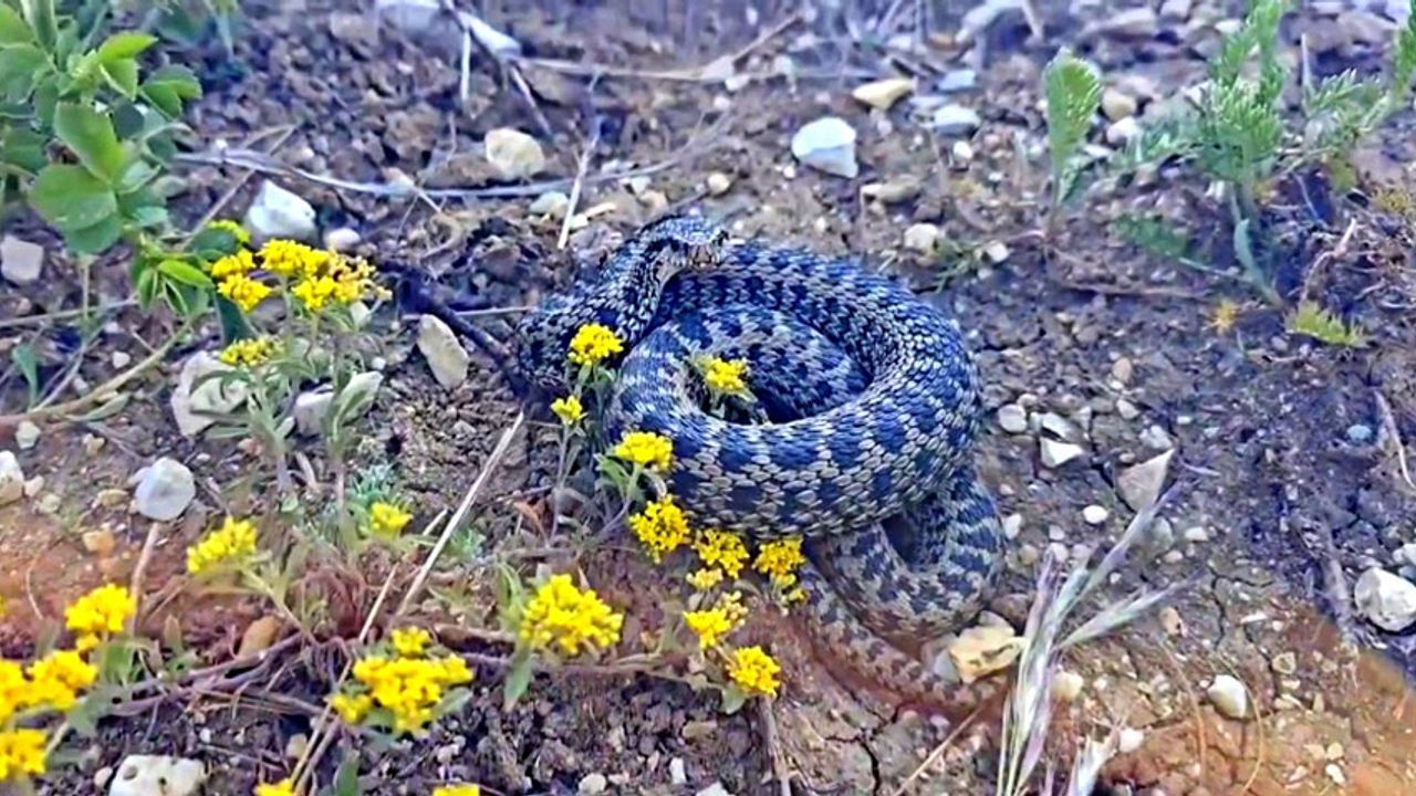 Erzincan’da sıcak havanın iyice artmasıyla birlikte canlanan doğada yılanlar da görülmeye başladı. Çayırlı ilçesine bağlı Çilhoroz köyü yaylalarında çobanlık yapan Mert Yılmaz, sürüsünü otlatırken, Türkiye'nin en zehirli yılan türlerinden engerek yılanını fark etti. Yılmaz, o anları kamerayla kayıt altına aldı. Görüntülenen koca engerek yılanı daha sonra gözden kayboldu.