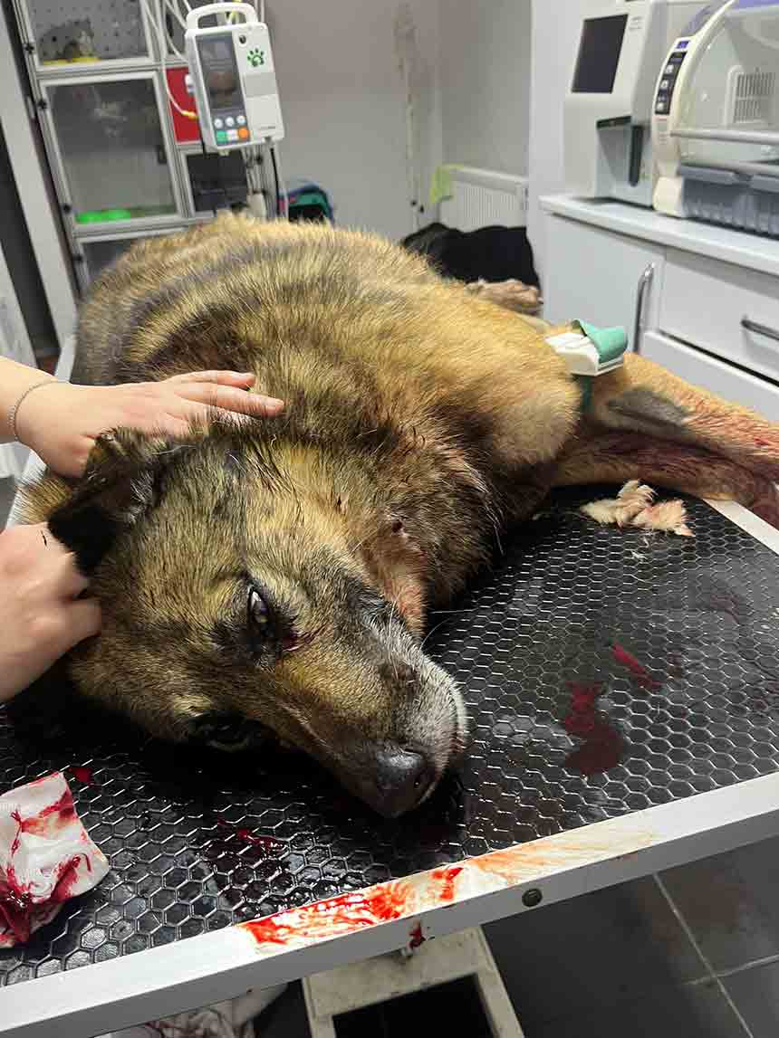 Veteriner kliniğinde tedavi altına alınan köpeğin sağlık durumunun ciddiyetini koruduğu öğrenilirken, olayla ilgili jandarma ekipleri tarafından inceleme başlatıldı.