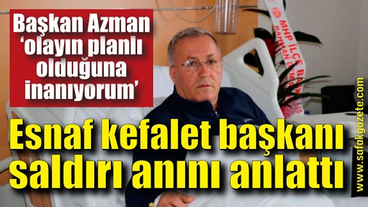 Zonguldak’ın Ereğli ilçesi Esnaf Sanatkarlar Kredi ve Kefalet Kooperatifi Başkanı Mehmet Azman dün uğradığı silahlı saldırı olayının detaylarını anlattı. Başkan Azman olayın planlı olduğuna inandığını ifade etti.