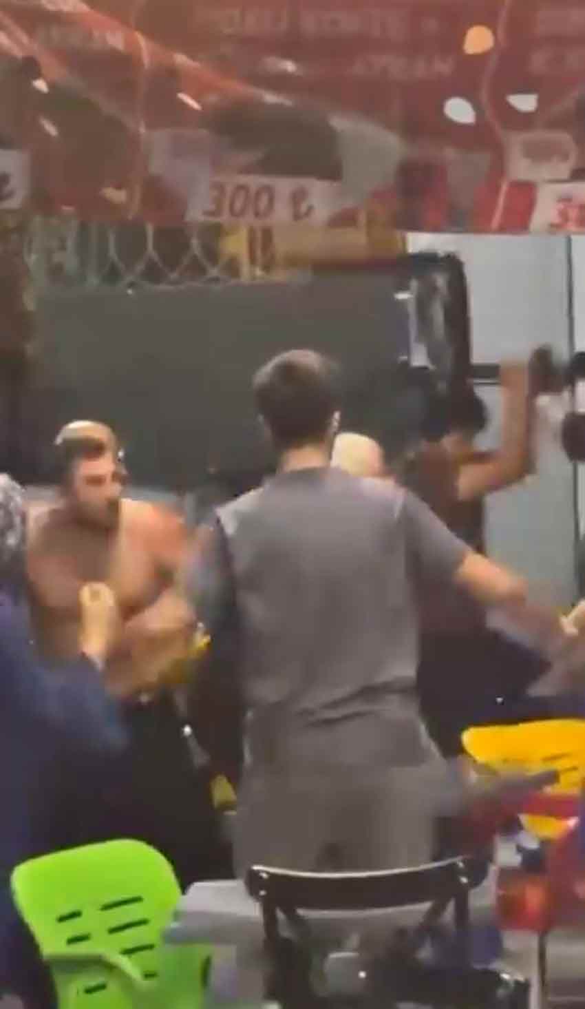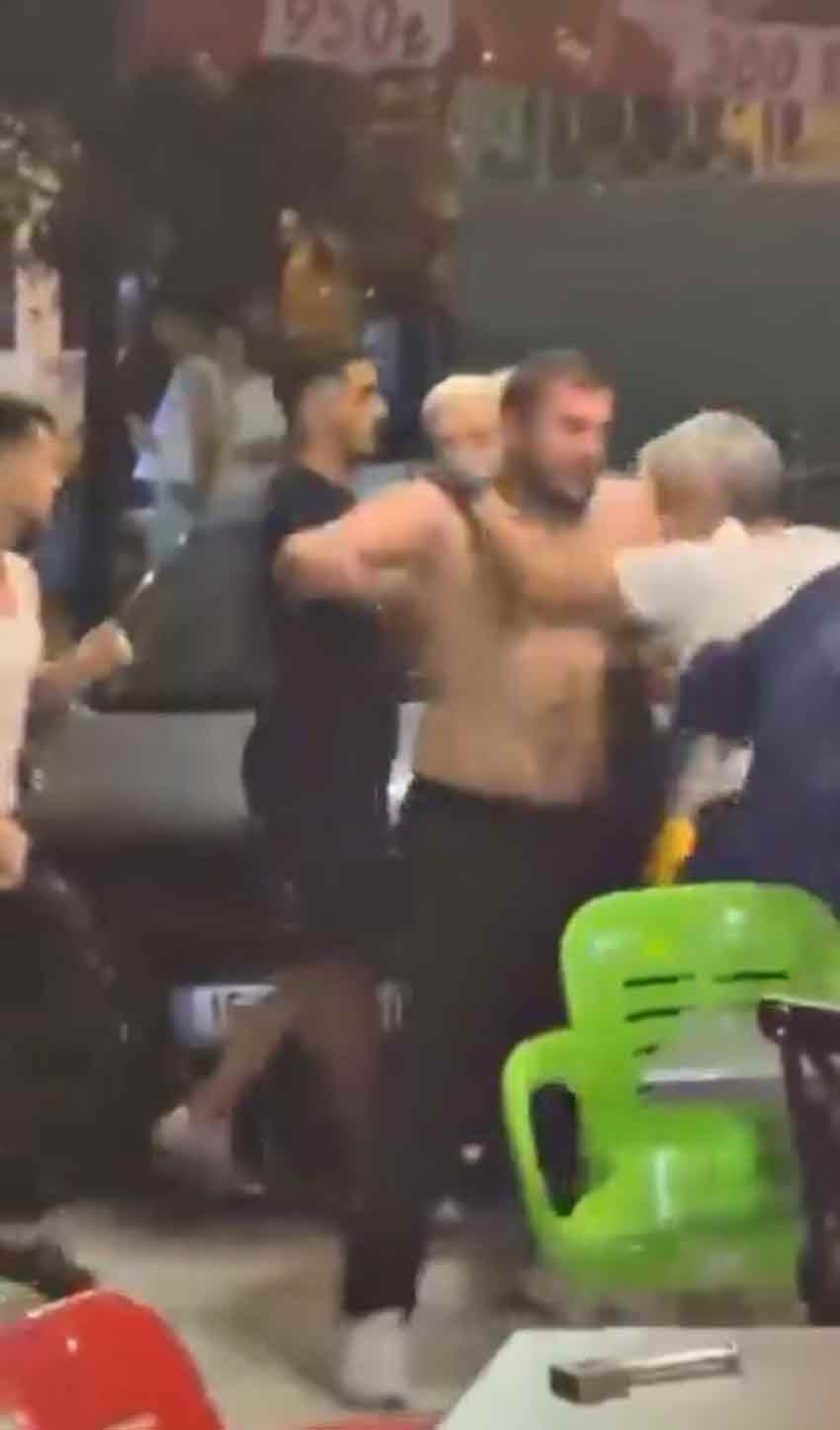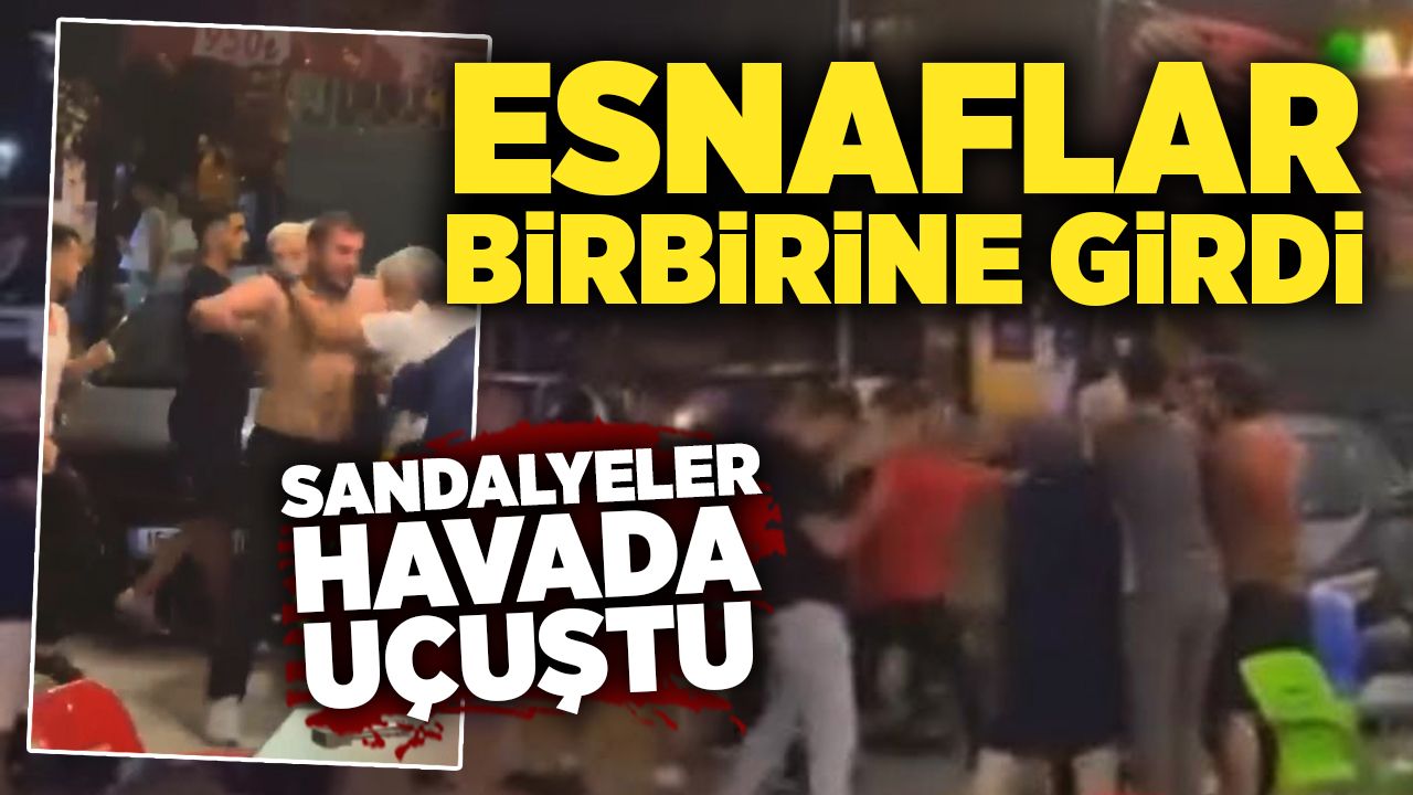 Bursa’nın merkez Osmangazi ilçesinde iki komşu esnaf arasında çıkan tartışma kısa sürede büyüyerek kavgaya dönüştü. Tarafların birbirine sandalye fırlattığı anlar kameraya saniye saniye yansıdı.