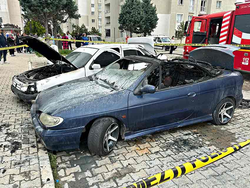 Uşak'ta evli çift arasında çıkan tartışmanın üzerine, kadın emniyette ifade verirken koca ise önce daireyi sonra ise binanın önünde bulunan arabaları yakarak olay yerinden kaçtı.