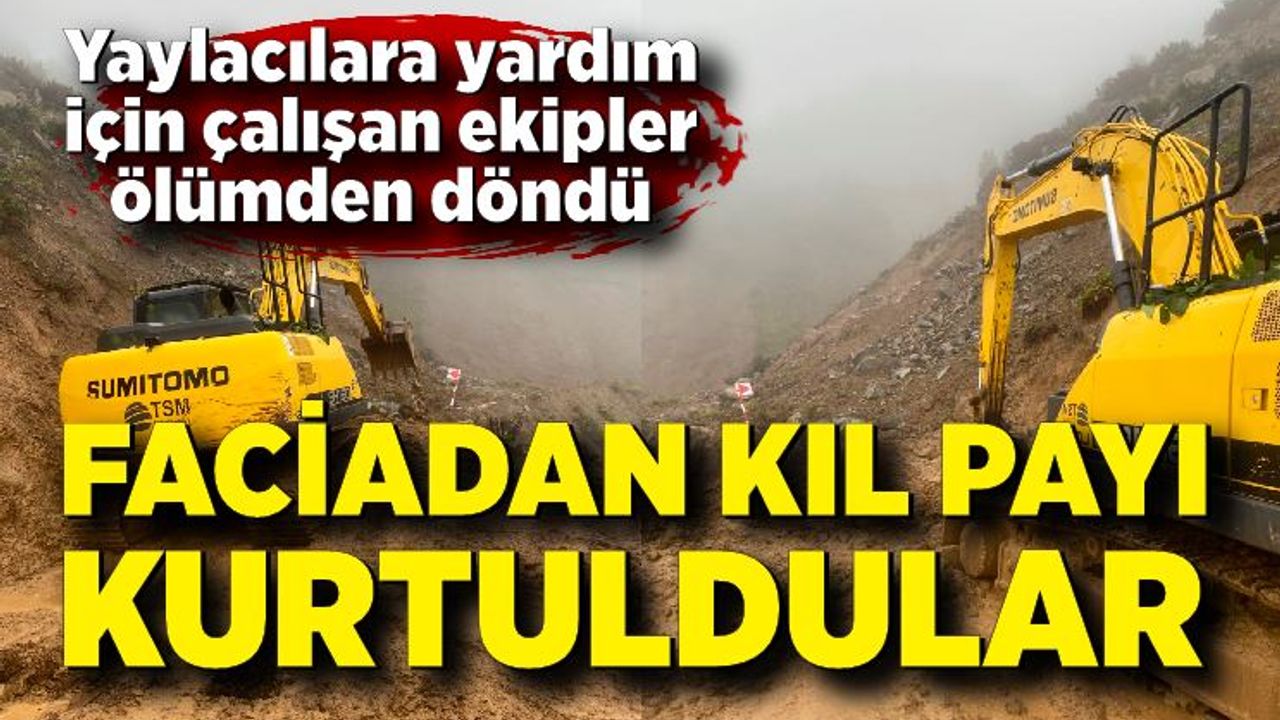 Çamlıhemşin ilçesinde aşırı yağışların ardından yaşanan sel felaketi yayla yollarının da kapanmasına neden oldu. Çamlıhemşin’e bağlı Dikkaya Köyü Koçdüzü Yaylası’nın kapanan yolunda gönüllülerin de desteğiyle yürütülen yol açma çalışmalarında esnasında ise toprak kayması meydana geldi. Çalışmaların sürdüğü bölgede yamaçtan kayan toprak kütlesi nedeniyle zor anlar yaşanırken iş makinesi operatörü yaptığı manevrayla olası faciadan son anda kurtuldu. Bölgede bulunan vatandaşlar da büyük bir tehlike atlattı.