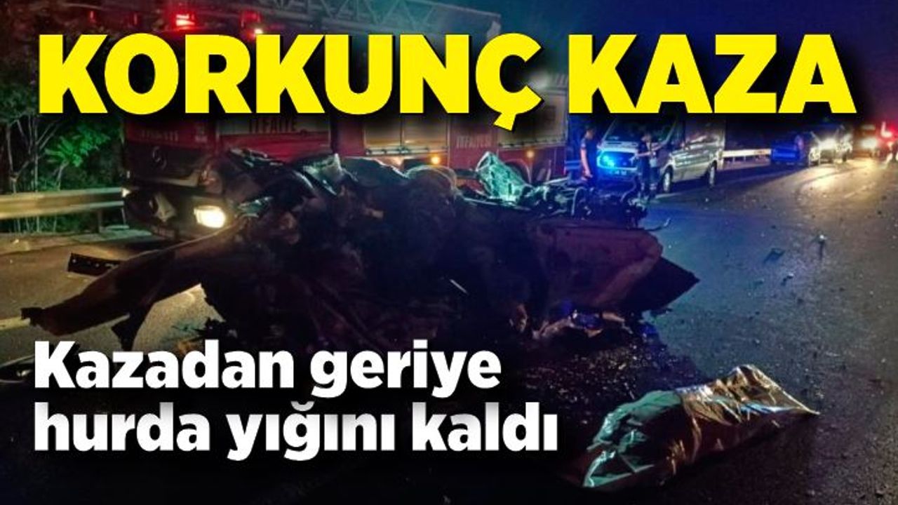 Anadolu Otoyolu Sakarya geçişinde kamyon ve tıra daha sonrasında da bariyerlere çarpan otomobil, adeta kağıt gibi ezilerek hurdaya döndü. Kazada 1 kişi öldü, 1 kişi yaralandı.