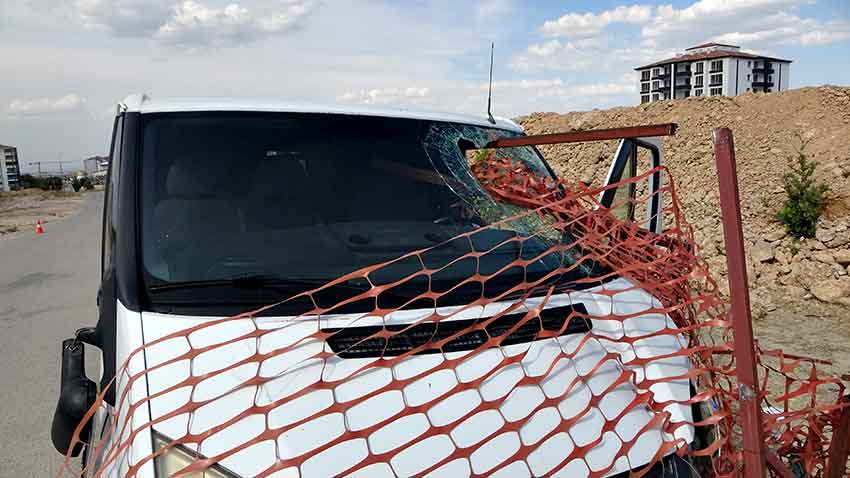 Malatya'nın Yeşilyurt ilçesinde meydana gelen kazada korkuluk sürücünün kafasına saplandı. Feci kaza anı anbean kameralara yansıdı.