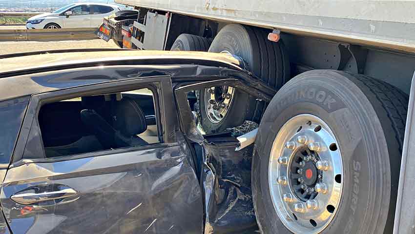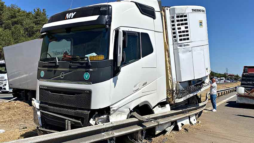 Bolu Anadolu Otoyolu’nda lastiği patlayan tır kontrolden çıkarak otomobille çarpıştı. Çarpışmanın etkisiyle otomobil yaklaşık 20 metre boyunca tırın altında sürüklendi. Her iki araç da orta refüje çıkarak durabildi. Meydana gelen kazada 1 kişi yaralandı.