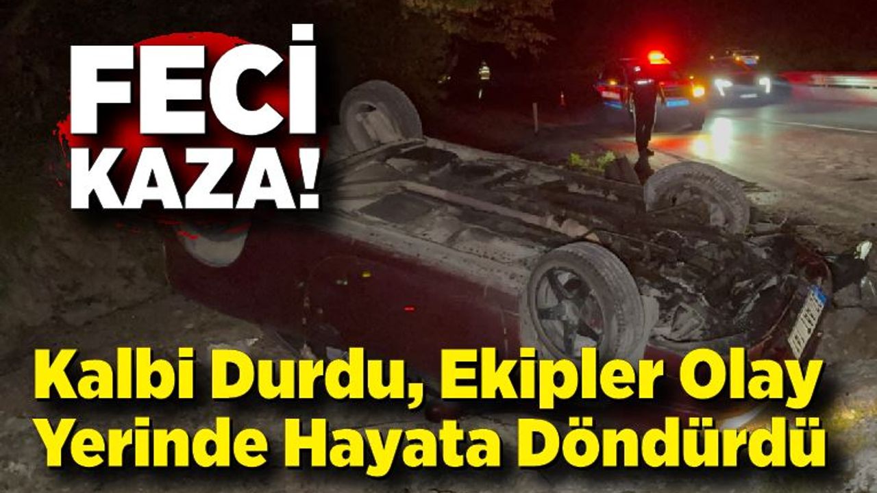Düzce'de viraja sert giren otomobil kanala uçup takla attı. Kazada kalbi duran sürücüyü, sağlık ekipleri olay yerinde kalp masajı yaparak kurtardı.
