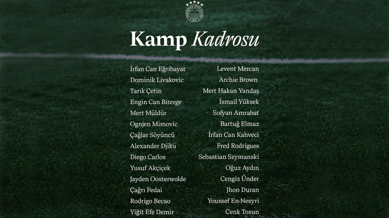 Fenerbahçe'nin, kamp kadrosuna şu futbolcular yer aldı: