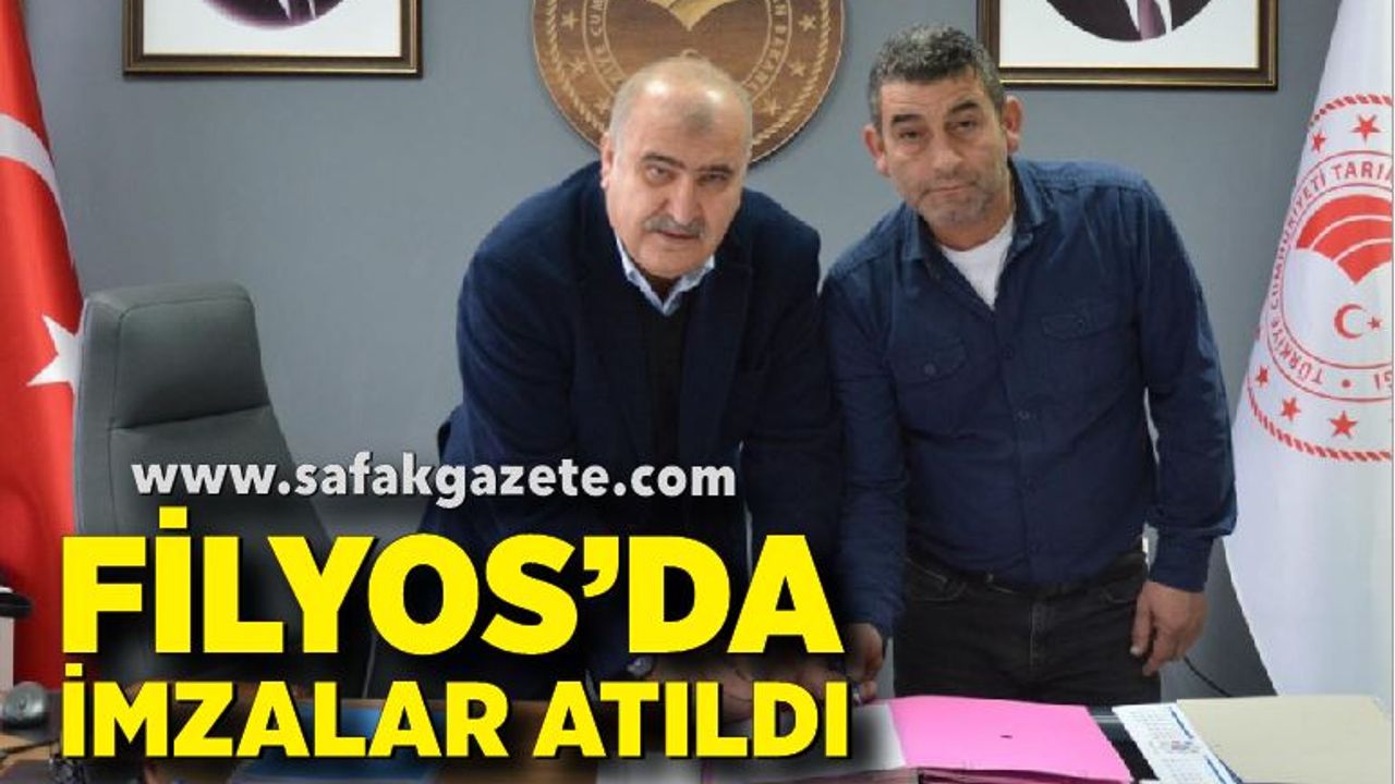 Filyos Balıkçı Barınağı’nın kira sözleşmesi, Zonguldak Tarım ve Orman İl Müdürü Nihat Ağan ile S.S. Filyos Su Ürünleri Kooperatifi Başkanı Zeki Çakar tarafından Zonguldak Tarım ve Orman İl Müdürlüğü’nde imzalandı.