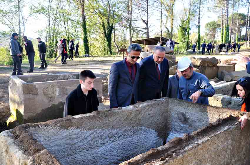 Ayrıca Prof. Dr. Yıldırım, özgün mimari dokusu korunarak kazı alanında şimdiye kadar 96 lahit, 23 oda, 7 sanduka ve 60 çatkı kiremit mezar tespit edildiğini toplamda 1317 eserin gün yüzüne çıkarıldığını aktardı. Roma Dönemi’ne tarihlenen geniş nekropol alanında, yaklaşık 500 metre uzunluğundaki antik caddenin her iki yanında sıralanan lahitler ve yamaçlara oyulmuş oda mezarlar Rektör Akkaya tarafından incelendi.