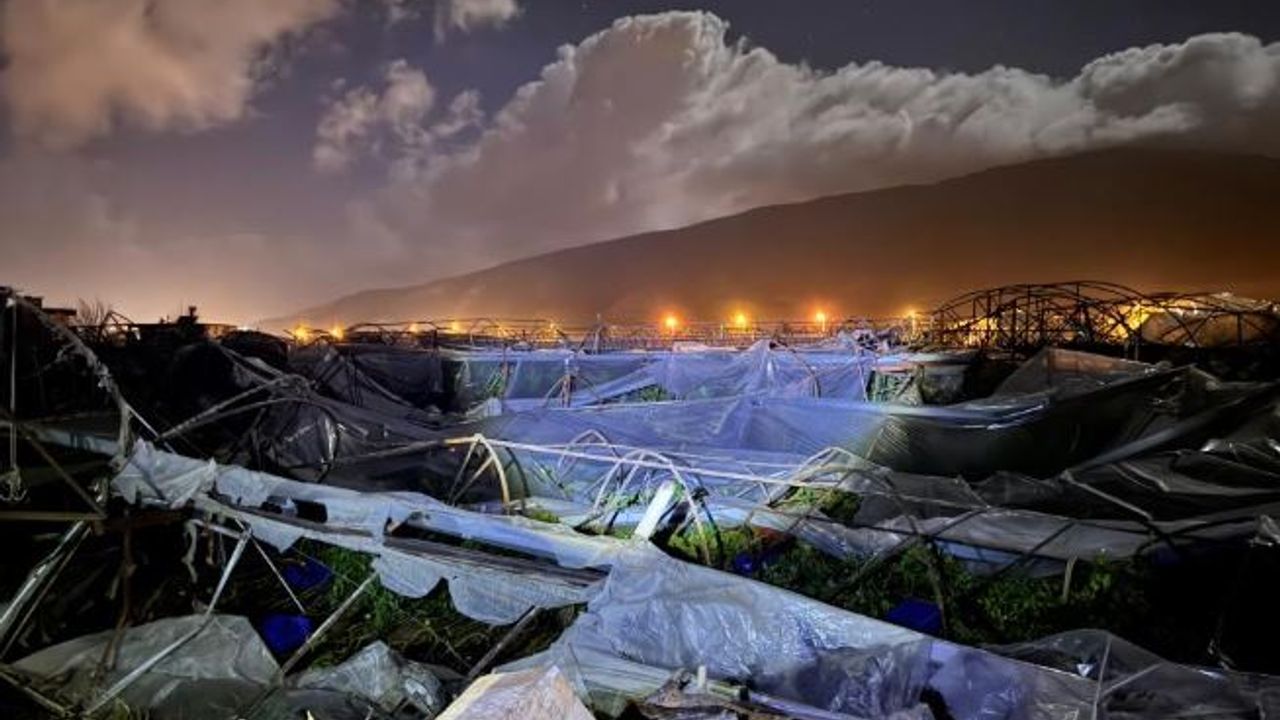 Karaya çıkan hortum, domates, biber ve kabak yetiştirilen seraları adeta yerle bir etti. Şiddetli rüzgar nedeniyle birçok sera kullanılamaz hale geldi.