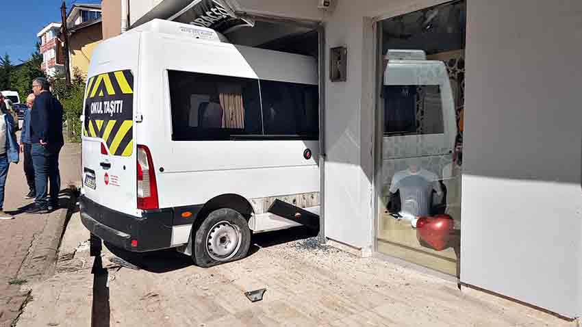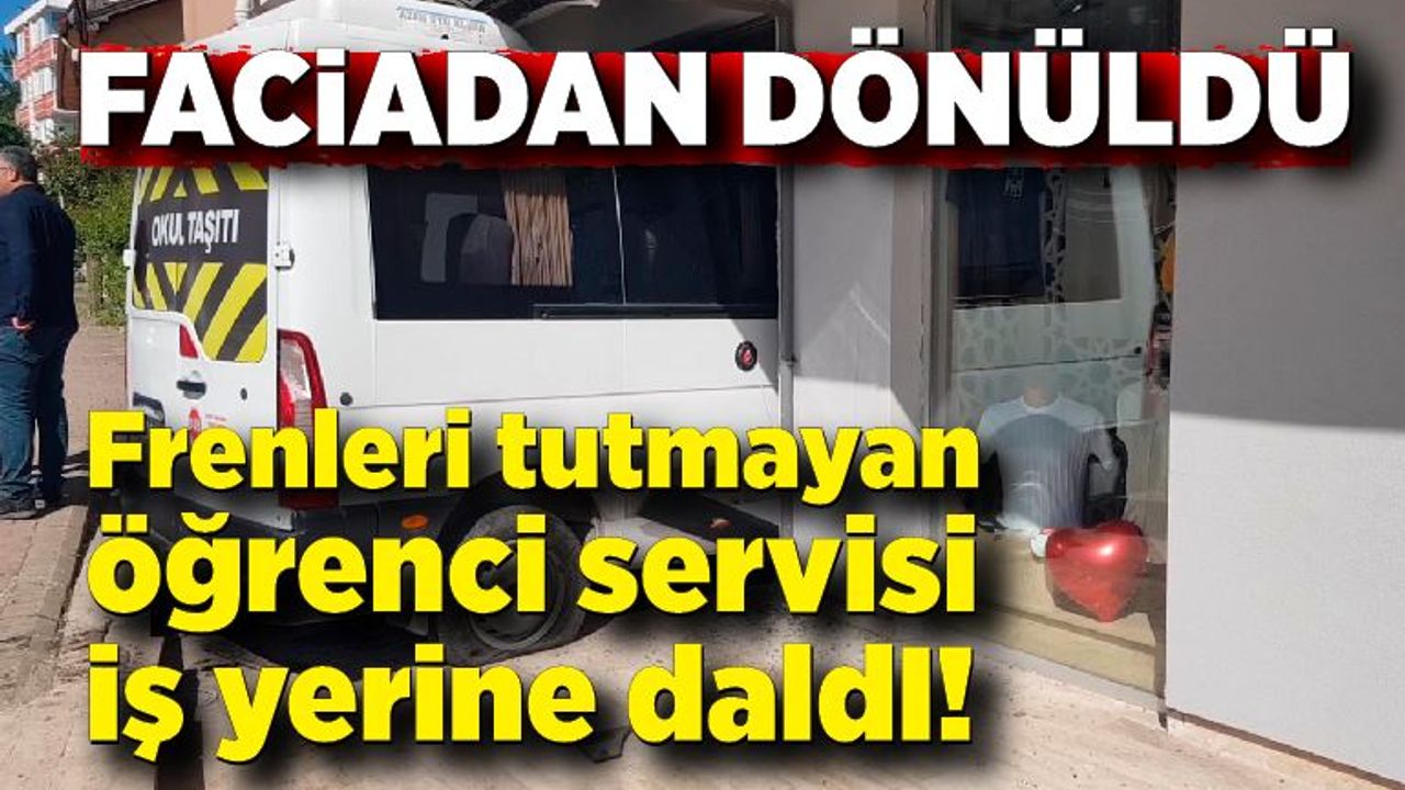 Karabük'ün Safranbolu ilçesinde freni boşalan öğrenci servisi, kaldırıma çaparak bir iş yerine girdi. Araçta öğrencilerin olmaması faciayı önlerken, iş yeri sahibi ise saniyelerle ölümden kurtuldu.
