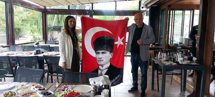 Şıklığı, zarafeti ve güzelliği ile de dikkat çeken bayan başkana gittiği bir davette de Atatürk motifli Türk Bayrağı hediye edildi. Hediyeyi kendisine takdim eden CHP Çaycuma İlçe başkanı Fahri Diler kendisini Çaycuma’ya her zaman beklediklerini, bayan başkanı konuk etmekten her zaman onur duyacaklarını söyledi.
