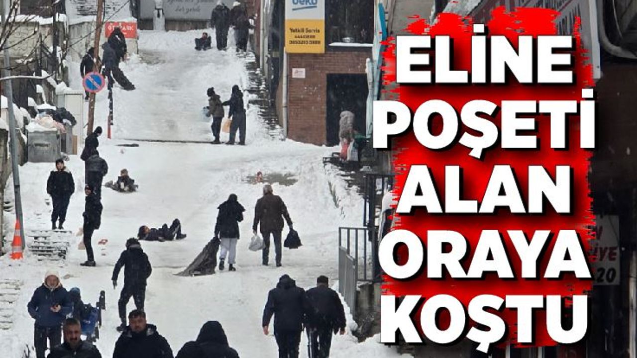 Zonguldak'ta iki gündür yağan kar yağışı kent merkezinde etkili oldu. Yoğun kar yağışında elin poşeti alan çocuklar kayarak karın tadını çıkarttı. Mutlulukları gözlerinden okunan çocuklar gönüllerince eğlenerek karın tadını çıkarttı.