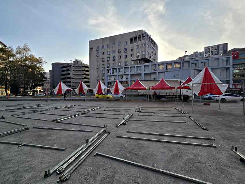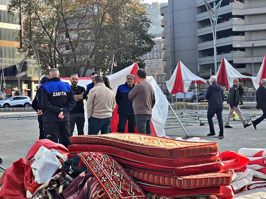Yaşanan karışıklık nedeniyle belediye binasının karşısındaki alana çadırlarını kuran katılımcıların yanına giden zabıta ekipleri, kurulumu durdurarak çadırların kaldırılmasını istedi.