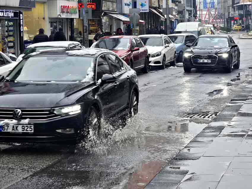 Kentin en işlek caddesinde ana yolda oluşan çukurda biriken yağmur suları, araçların geçişi sırasında çevrede yürüyen yayalara sıçrıyor. Üzerlerine su sıçrayan vatandaşlar zor anlar yaşarken, sürücüler ise çukura girmemek için ani manevralar yapmak zorunda kalıyor. Bu durum, özellikle yoğun saatlerde trafikte aksamalara ve tehlikeli görüntülere neden oluyor.