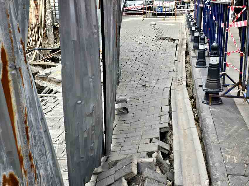 Bir süre önce bir kısmı kapatılan yol, meydana gelen göçme sonrası tamamen ulaşıma kapatıldı. Yüklenici firmanın dikkatsizce yürüttüğü kazı çalışmaları sonucunda hem yan binalarda hasar oluştu hem de cadde zemini çöktü.