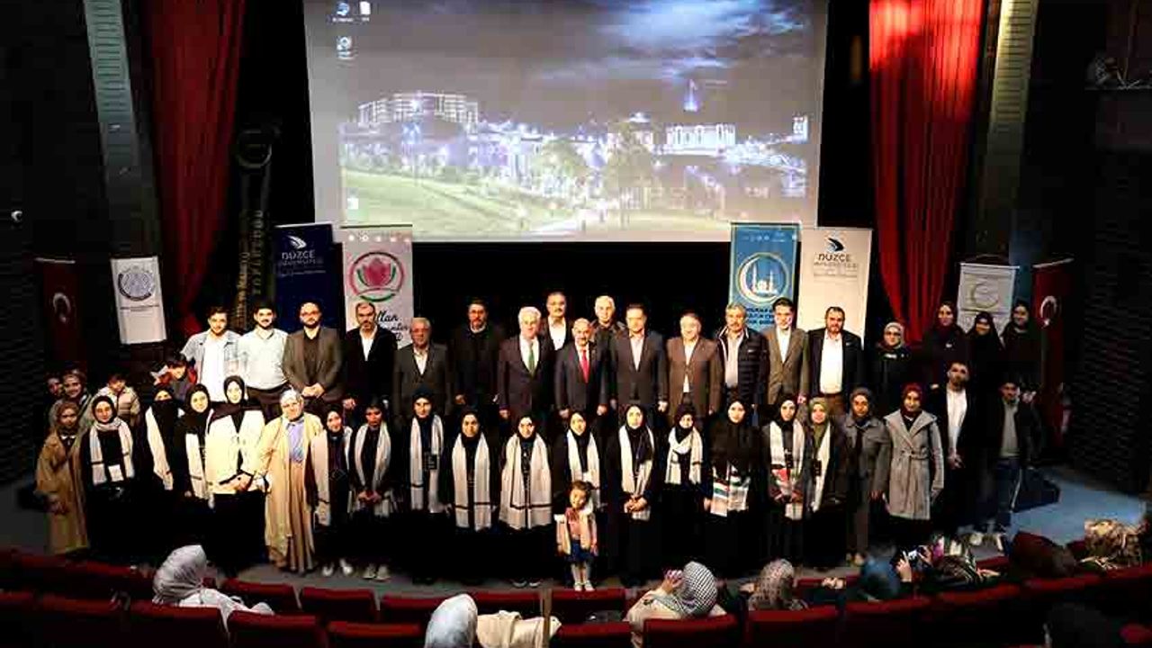 Düzce Üniversitesi Ahlak ve Maneviyatı Güçlendirme Topluluğu tarafından düzenlenen "Gazze Üzerine Düşünceler" başlıklı konferans, İstiklâl Konferans Salonu'nda yoğun bir katılımla gerçekleştirildi. Sultan Hanımlar Derneği'nin katkıları, Ahlak ve Maneviyatı Güçlendirme Topluluğu iş birliğiyle hazırlanan etkinlikte, Filistin'de yaşanan insani dram ve küresel tepkisizlik ele alındı.