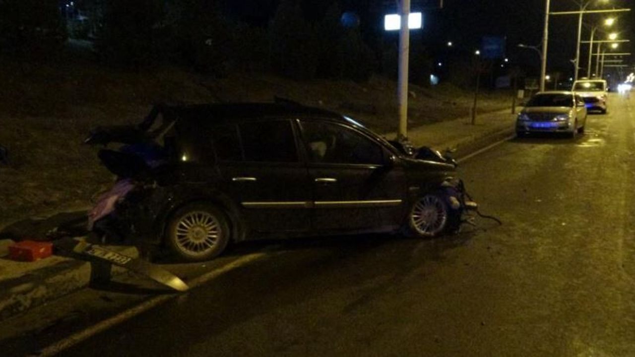 Araçlardan biri direğe çarpıp parçalandı