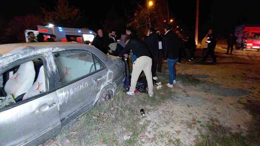 Bolu’nun Mudurnu ilçesinde bölünmüş yolda meydana gelen kazada 14 NC 415 plakalı otomobil ile 14 LA 114 plakalı hafif ticari araç çarpıştı. Çarpışmanın etkisiyle her iki araç da kontrolden çıkarak takla attı.
