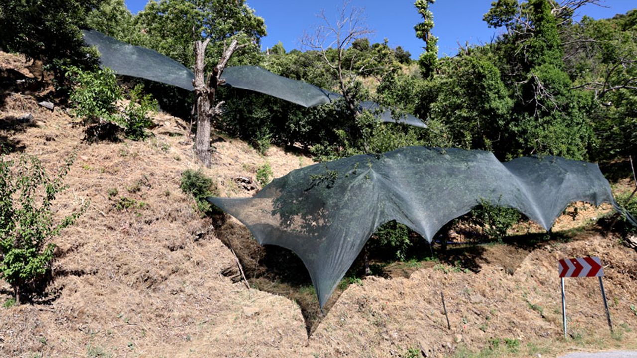 Aydın ve İzmir dağlarındaki yaylalarda az miktardaki erik meyvesini koruyabilmek için çiftçiler ağaçların üzerine yeşil file gererek ürünleri doğal haliyle saklamaya çalışıyor.