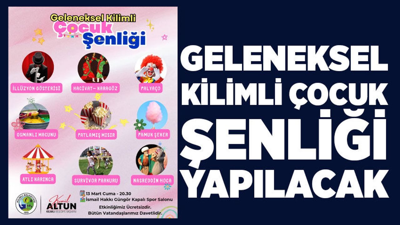 Altun açıklamasında, “13 Mart Cuma günü saat 20.30 da İsmail Hakkı Güngör Kapalı Spor Salonunda yapılacak olan çocuk şenliği etkinliği ücretsizdir. Tüm vatandaşlarımız davetlidir” diye konuştu.
