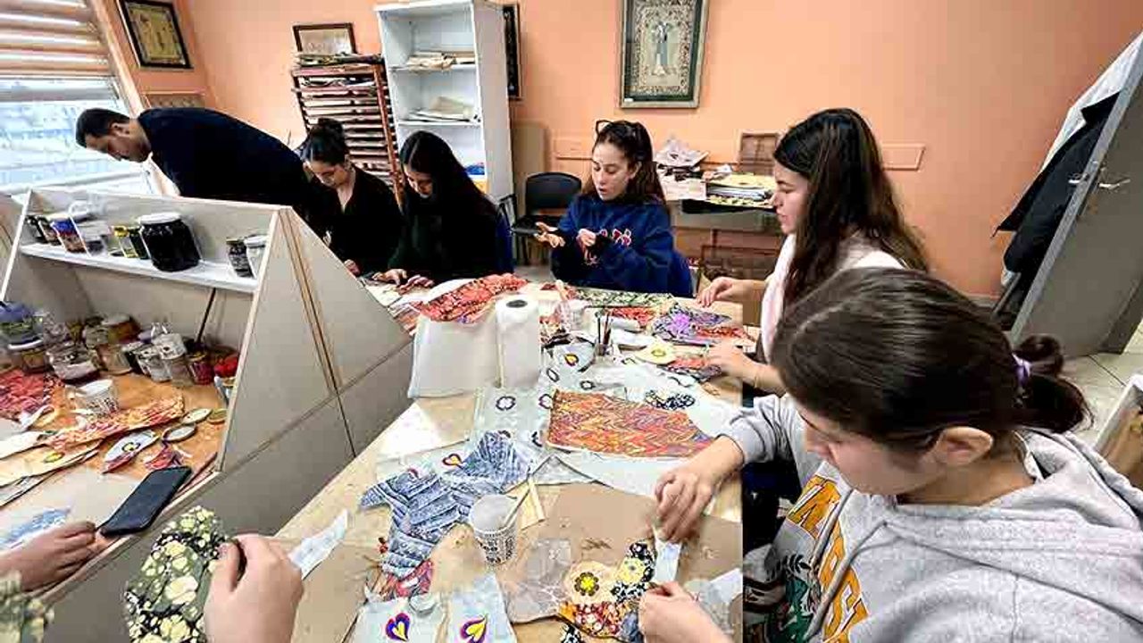 Geleneksel Türk sanatları arasında önemli bir yere sahip olan ebru sanatı, gençlere uygulamalı olarak tanıtıldı. Katılımcılar, su ve boyaların eşsiz uyumunu deneyimleyerek kendi özgün çalışmalarını hazırladı.