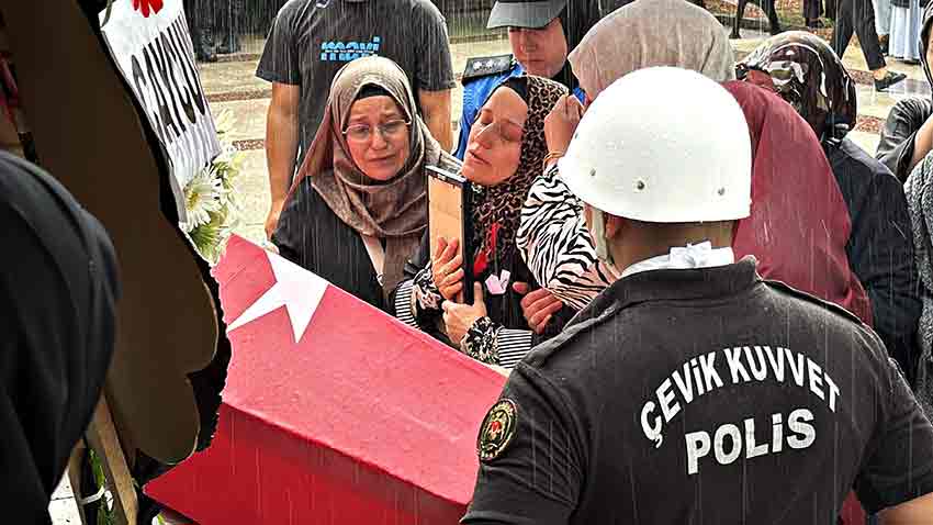 Ayakta durmakta zorlanan Uluadaoğlu'nun babası, annesi, eşi ve yakınları gözyaşlarına boğuldu. Anne Zeynep Uluadaoğlu'nun, "Seni çok seviyorum canım oğlum. Sen beni hep gururlandırdın oğlum" sözleri yürekleri dağladı.