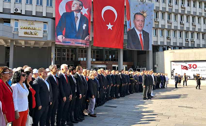 Genel Maden İşçileri Sendikası (GMİS) Genel Başkanı Hakan Yeşil, 30 Ağustos Zafer Bayramı nedeniyle Valilik binası önünde Atatürk Anıtı önünde düzenlenen çelenk sunma törenine katıldı.