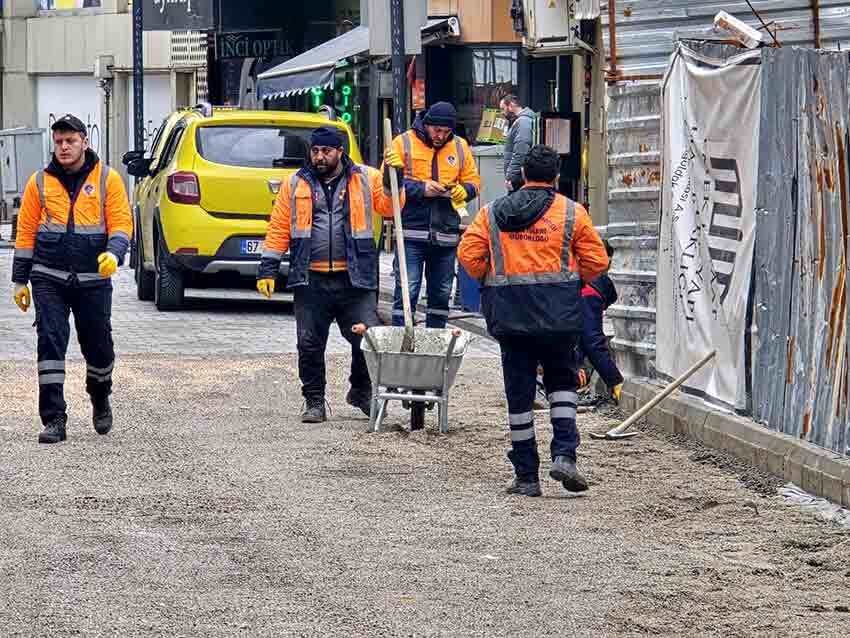 Zemin düzenlemesinin ardından belediye ekipleri bölgede parke döşeme çalışmalarına başladı. Bozulan yolun yeniden düzenlenmesi ekipler, alanı kısa sürede eski görünümüne kavuşturmayı hedefliyor.