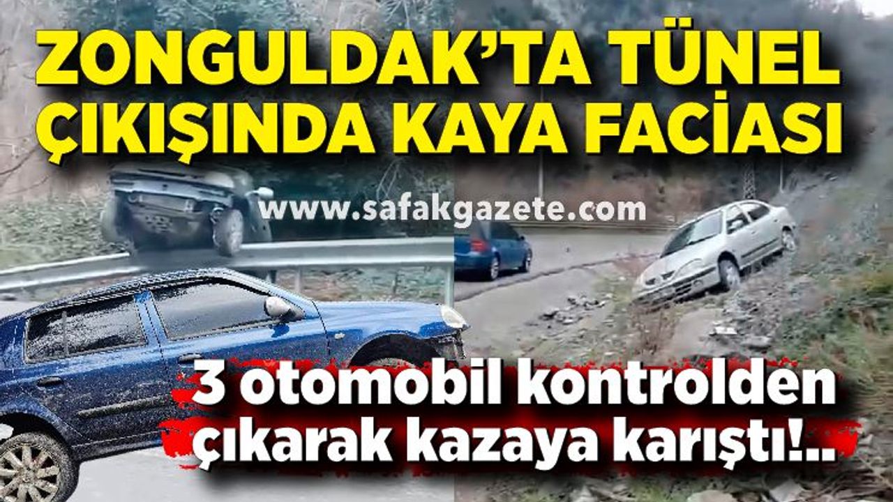 Zonguldak Gökgöl Mağarası tünel çıkışında dağlık alandan koparak yola düşen taşlar nedeniyle 3 otomobil kontrolden çıkarak kazaya karıştı. Kazada yaralanan olmazken araçlarda maddi hasar oluştu.