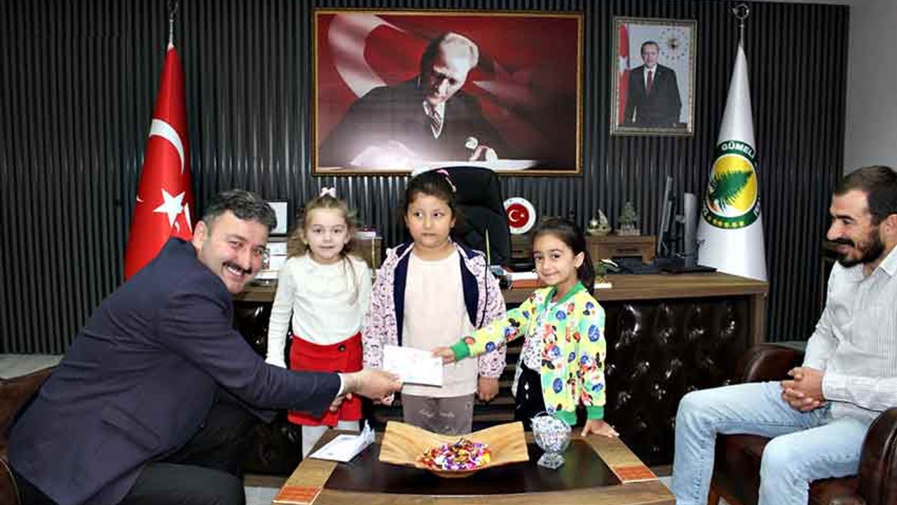 Zonguldak’ın Alaplı İlçesine bağlı Gümeli Belde Belediye Başkanı Aytaç Tosun, Gümeli İlk ve Ortaokul öğrencilerine, belediye adına hazırlattığı ve armağan ettiği ‘Gümeli’yi Biliyor Musun?’ adlı kitapçığın en arka sayfasında yer alan, ''Başkandan istediğiniz taleplerinizi yazın, bize getirin'' bölümünü doldurarak, ziyarete gelen okulun ana sınıfı öğrencilerini makamında ağırladı.