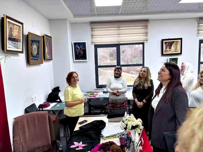 Atölyelerde hazırlanan el emeği ürünleri yakından inceleyen Hacıbektaşoğlu, kursiyerlerle sohbet ederek çalışmalar hakkında yetkililerden bilgi aldı.