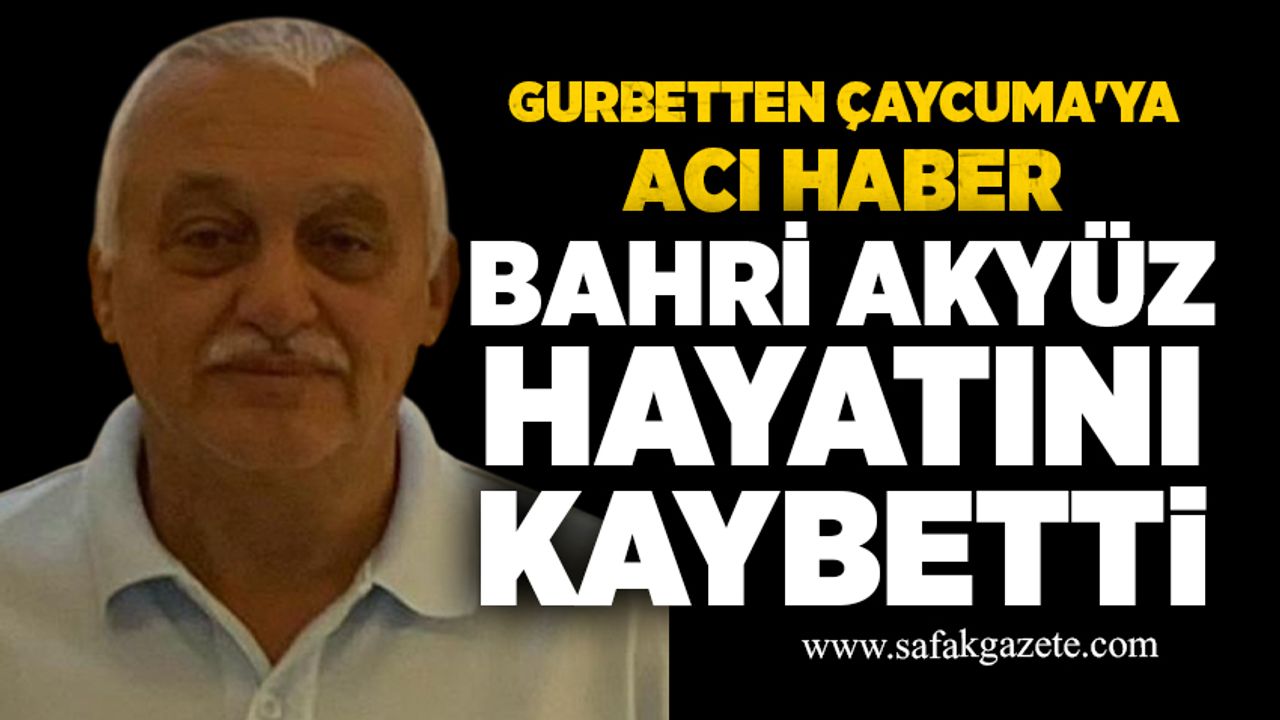 Çaycuma ilçesi Ayvazlar Mahallesi’nden Almanya’da yaşayan gurbetçi merhum Hayri Akyüz'ün oğlu, Bahriye Yağan'ın ağabeyi, Oktay, Tuncay, Umut ve Arzu Akyüz'ün babaları, Ayşe Akyüz'ün Eeşi Bahri Akyüz yaşamını yitirdi.