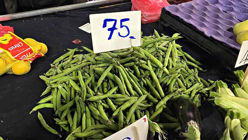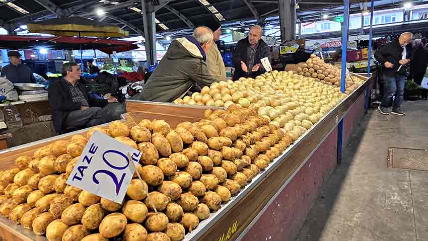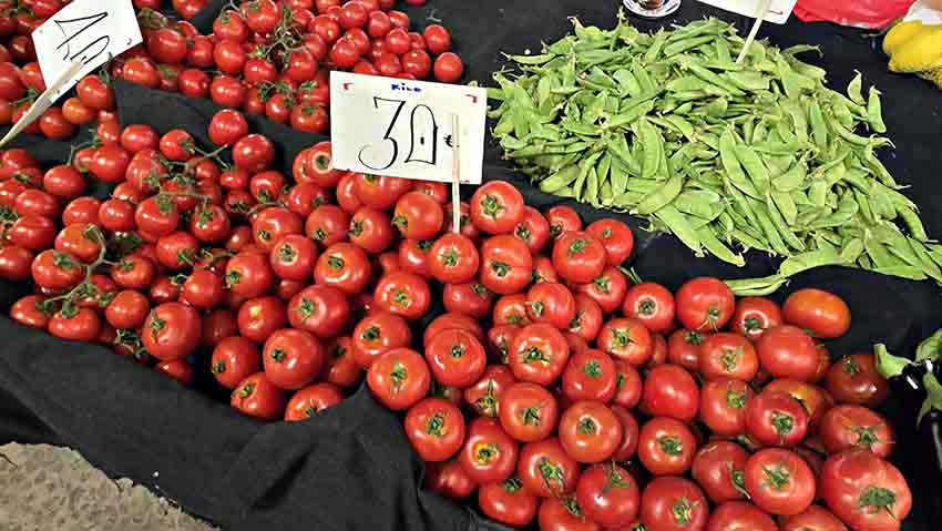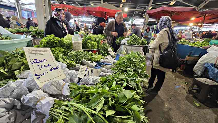 Halk pazarında tezgahlarda yer alan fiyatlar şu şekilde: patates 20, soğan 15, domates 30-40-50, salatalık 25-30 patlıcan 40, marul 40, sivri biber 75, bezelye 100'den alıcı buldu.