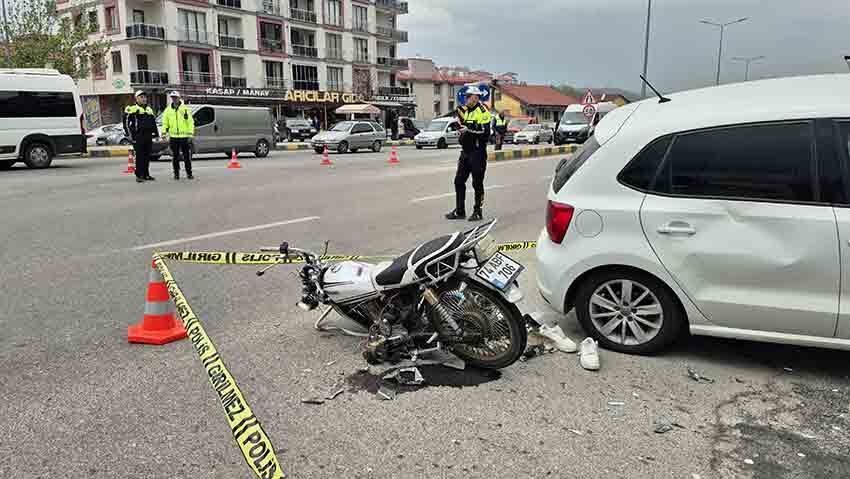 Edinilen bilgiye göre, Çaydüzü Mahallesi Kazım Karabekir Caddesi Hastane kavşağında Ulus'tan Bartın istikametine seyir eden Y.D.G (16) idaresindeki 74 ABF 706 plakalı motosiklet, hastane istikametinden çıkan Yakup Marıl (68) idaresindeki 37 ACN 253 plakalı otomobil ile çarpıştı. Feci kazada otomobil sürücüsü ile motosiklet sürücüsü ve arkasında bulunan Ç.B., ağır yaralandı. Kazanın ardından yaralılar ambulanslarla hastaneye kaldırılırken, yaralıların ayakkabıları ise çarpışmanın etkisiyle olay yerine savruldu. Trafik levhalarının da hasar gördüğü kazada yaralanan motosiklet sürücüsü Y.D.G. ve yanındaki Ç.B.'nin oto sanayide çalıştığı ve işe yetişmek için süratli gittikleri ileri sürüldü.