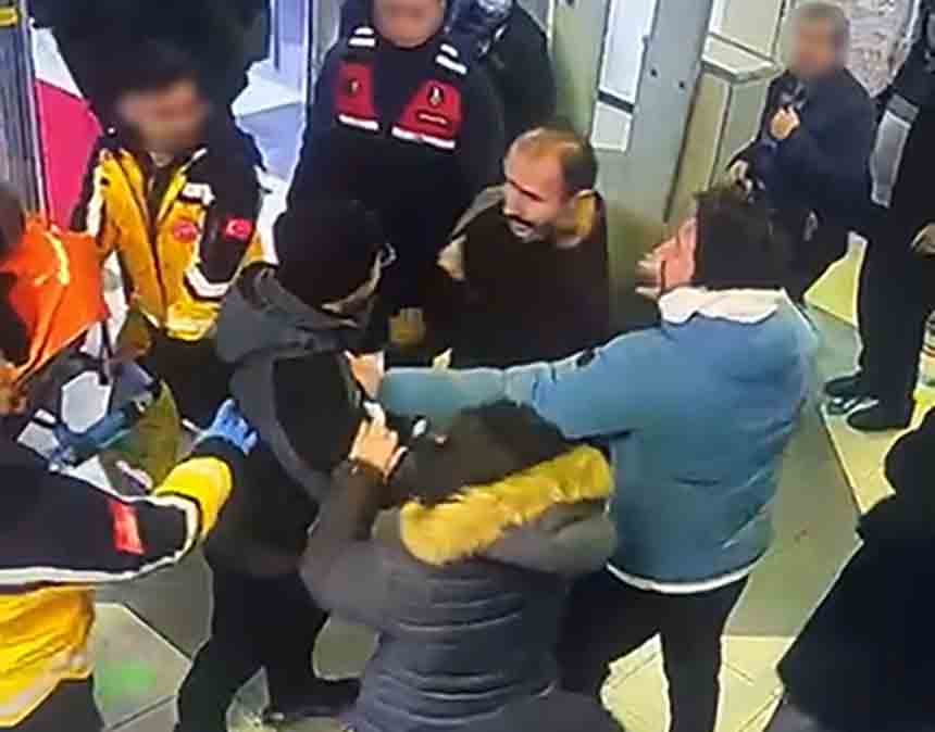 Hastane koridorunda yaşanan gerginlik, güvenlik kameralarına yansıdı. Görüntülerde tarafların tartıştığı, ardından fiziki temas yaşandığı ve çevredekilerin müdahale ettiği anlar net şekilde görülüyor.