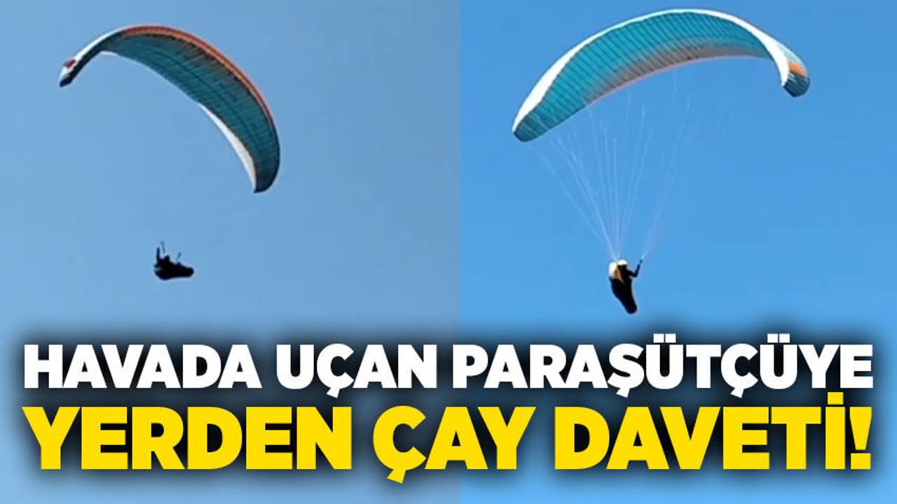 Zonguldak’ın Kilimli ilçesinde gökyüzünde uçuş yapan yamaç paraşütü sporcusunu fark eden bir vatandaş, yerden seslenerek paraşütçüyü çay içmeye davet etti. Beklenmedik bu çağrı karşısında havadaki sporcu da kayıtsız kalmadı.