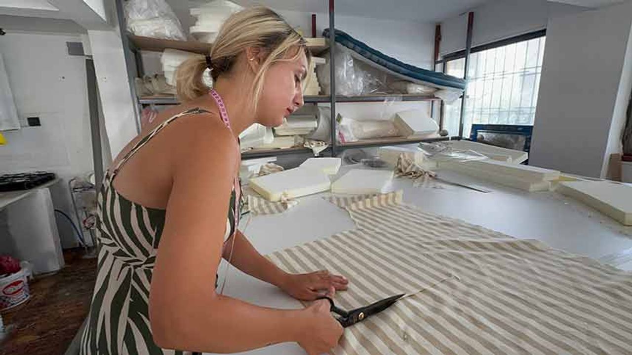 Tekne çadırları, minderleri ve marin döşemeleri üzerine çalışan Akcan, mesleğini "hayalim" dediği denizle buluşturdu.