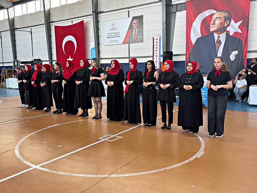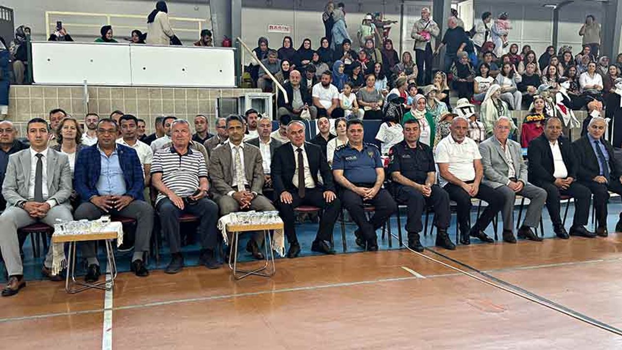 Saygı duruşu ve İstiklal Marşı’nın okunmasının ardından İlçe Halk Eğitimi Merkezi Müdürü İsmail Üzülmez yaptığı konuşmasında; "Her zaman, her yerde, herkese eğitim" ilkesiyle çıktığımız bu yolda, bireyleri hayata hazırlamanın, onlara yeni ufuklar açmanın ve toplumsal kalkınmaya katkı sağlamanın gururunu yaşıyoruz. Halk Eğitimi Merkezimiz, beşikten mezara kadar devam eden öğrenme sürecinde, her yaştan ve her kesimden vatandaşımıza eşit ve erişilebilir eğitim imkânları sunmaktadır. 7'den 70'e tüm vatandaşlarımız, kendilerini geliştirme fırsatı buluyor. Bir hobi edinmek isteyen, yeni bir meslek öğrenmek arzusunda olan ya da yeteneklerini belgelendirmek isteyen herkes, Halk Eğitimi Merkezimizin kapısını çalıyor. Bugün burada sergilenen birbirinden değerli el emeği, göz nuru eserler, bu sürecin ne kadar verimli geçtiğinin en güzel kanıtıdır.