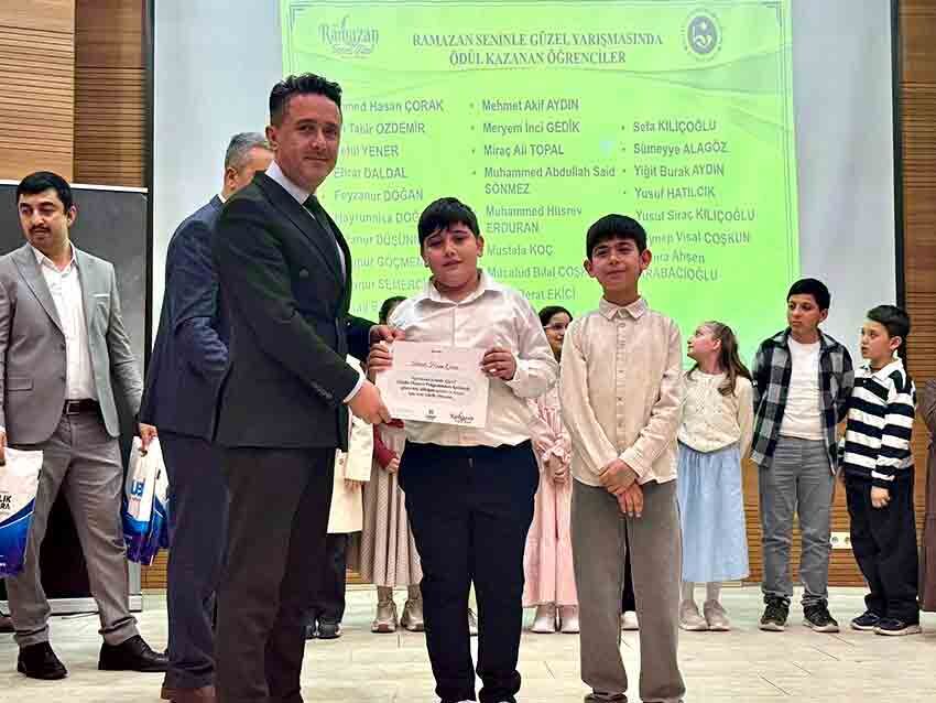 Düzenlenen yarışmada derece elde eden öğrencilere ödülleri protokol üyeleri tarafından takdim edilirken, programda eğitim ve okuma alışkanlığının önemine vurgu yapıldı.