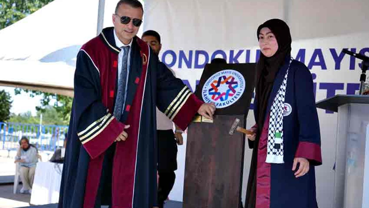 Ondokuz Mayıs Üniversitesi (OMÜ) İlahiyat Fakültesi 2024-2025 akademik yılı mezuniyet töreni ile 216 mezununu uğurladı. OMÜ Yaşam Merkezi'nde gerçekleşen 39. dönem mezuniyet töreni; saygı duruşu ve İstiklal Marşı ile başladı, daha sonra Kur'an-ı Kerim tilavetiyle devam etti. Mezuniyet töreninde, mezun olan öğrencilere başarı belgeleri verildi. Fakülteden mezun olan Sümeyye Bulut, başarısıyla dikkat çekti. Bulut hem fakülteden birinci olarak mezun oldu hem de hafızlığı bitirdi.