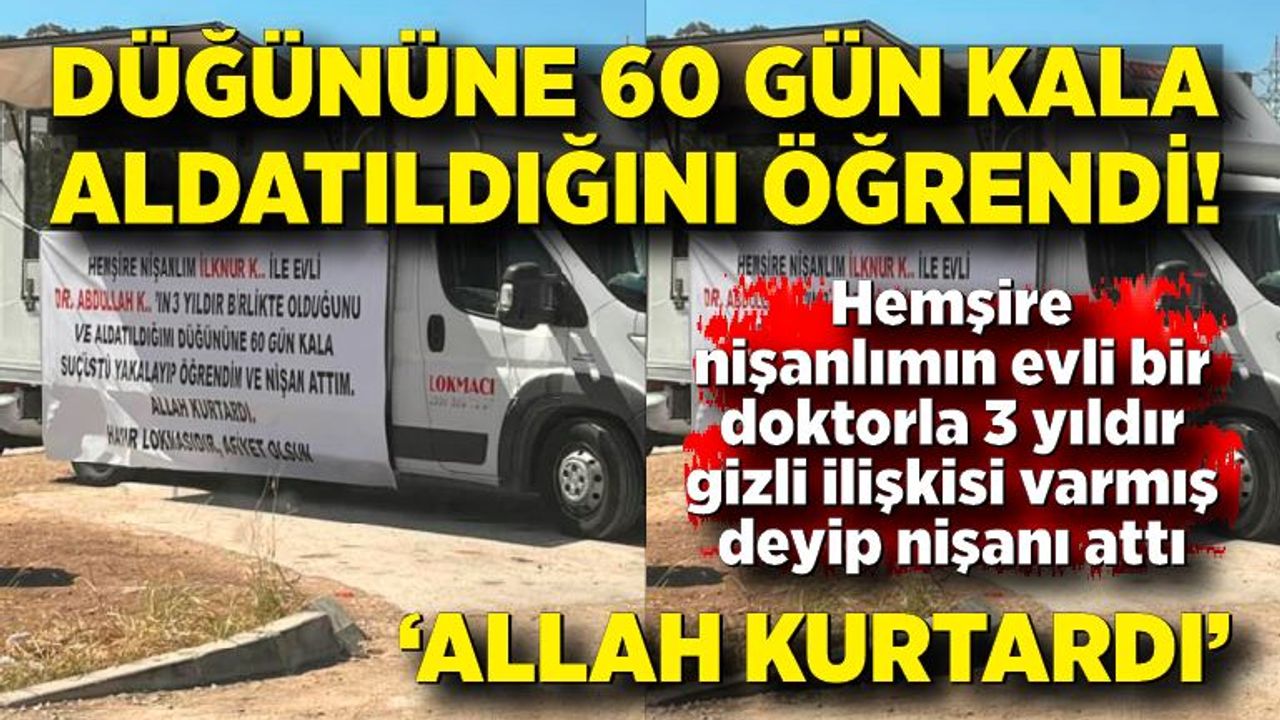 Adana'da düğününe 60 gün kala nişanlısı hemşire İlknur K.'nin, evli bir doktor olan Abdullah K. ile yaklaşık 3 yıldır gizli bir ilişki yürüttüğünü öğrenen genç adam, nişanı bozdu. Daha sonra bir tatlıcı ile anlaşan kişi, hemşire ve doktorun görev yaptığı Adana Şehir Eğitim ve Araştırma Hastanesi önünde lokma dağıttı. Araç önüne yerleştirdiği pankartta ise "Aldatıldığımı düğünüme 60 gün kala suçüstü yakalayıp öğrendim ve Allah kurtardı. Hayır lokmasıdır, afiyet olsun" ifadelerine yer verdi. Lokma yiyip yazıyı okuyanlar hayrete düştü.